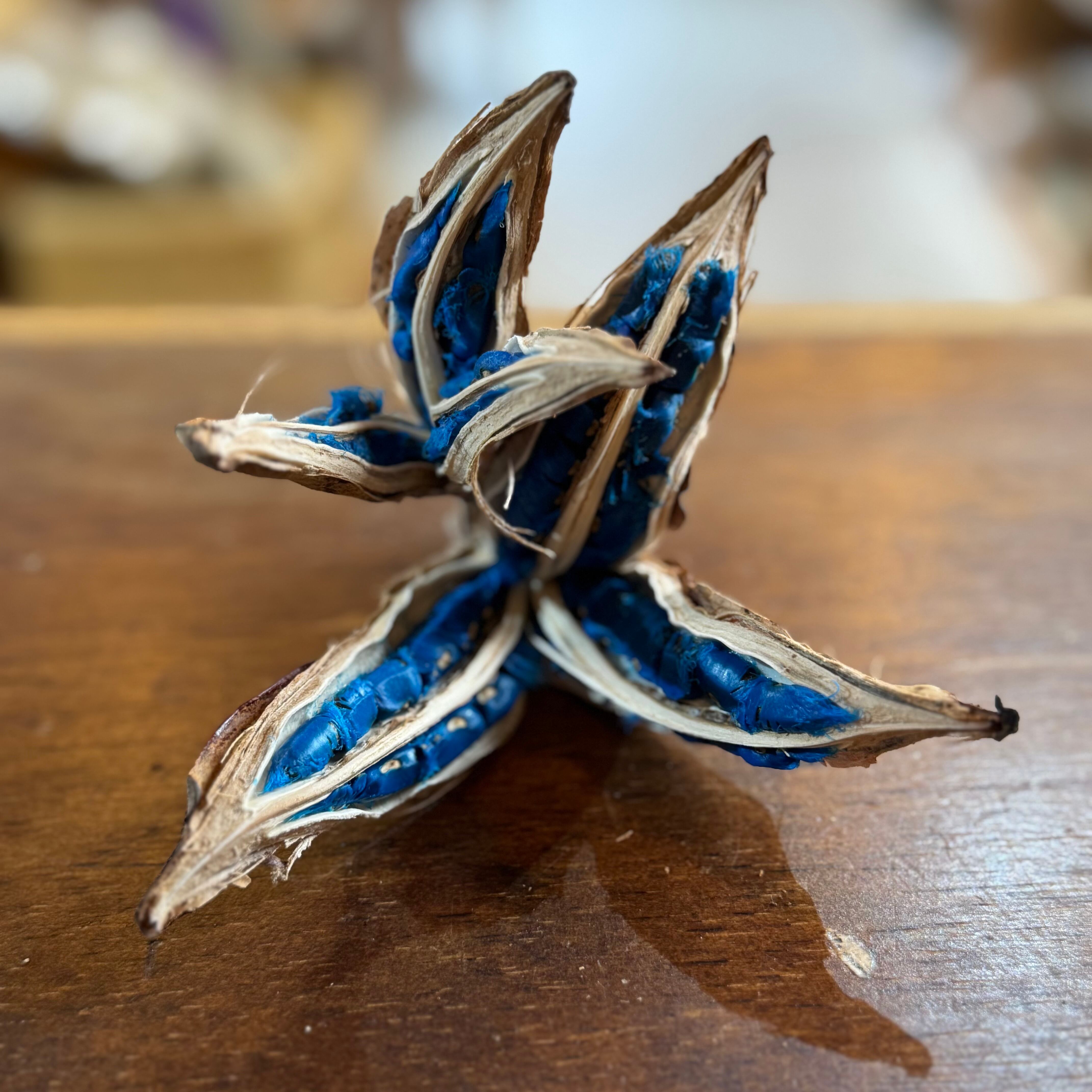 コバルトブルーの種が特徴的なタビビトノキ。