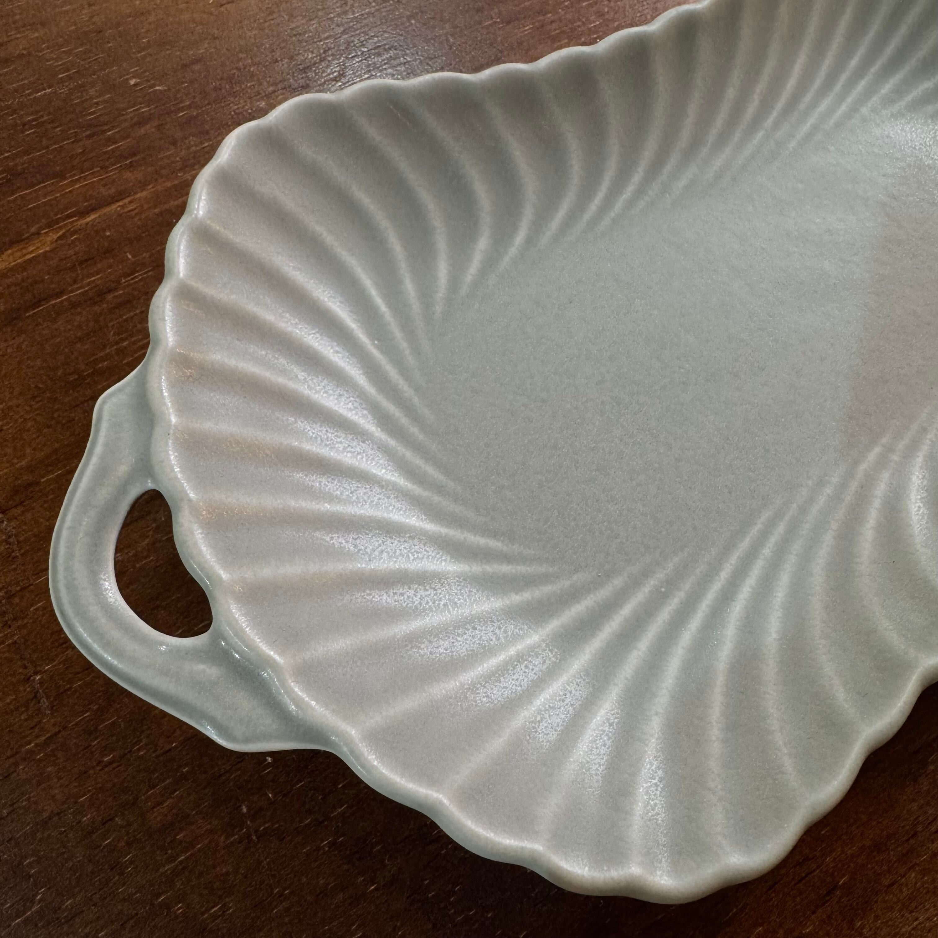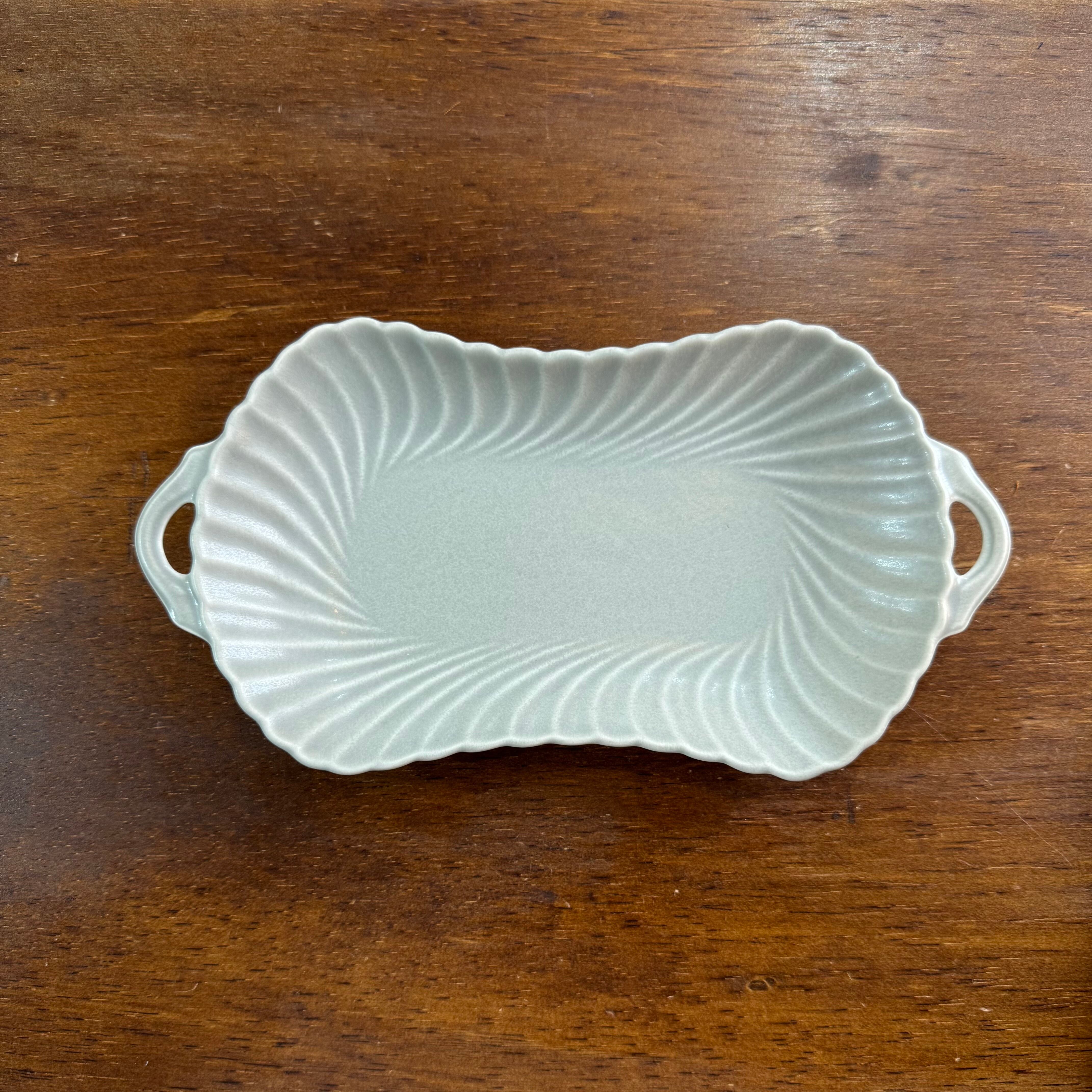 波のようなレリーフが釉薬に浮かび上がり華やかに見えるプレート。