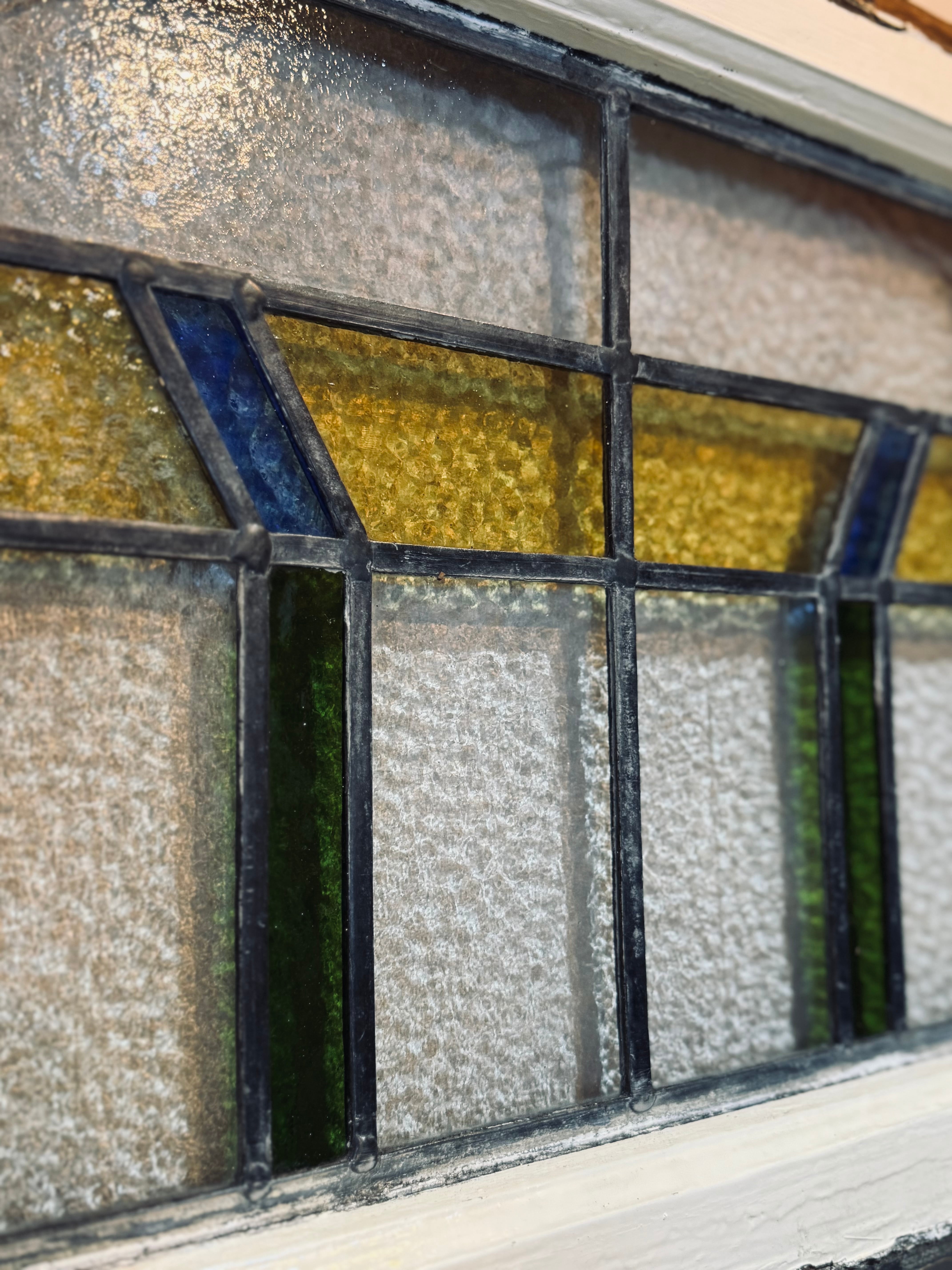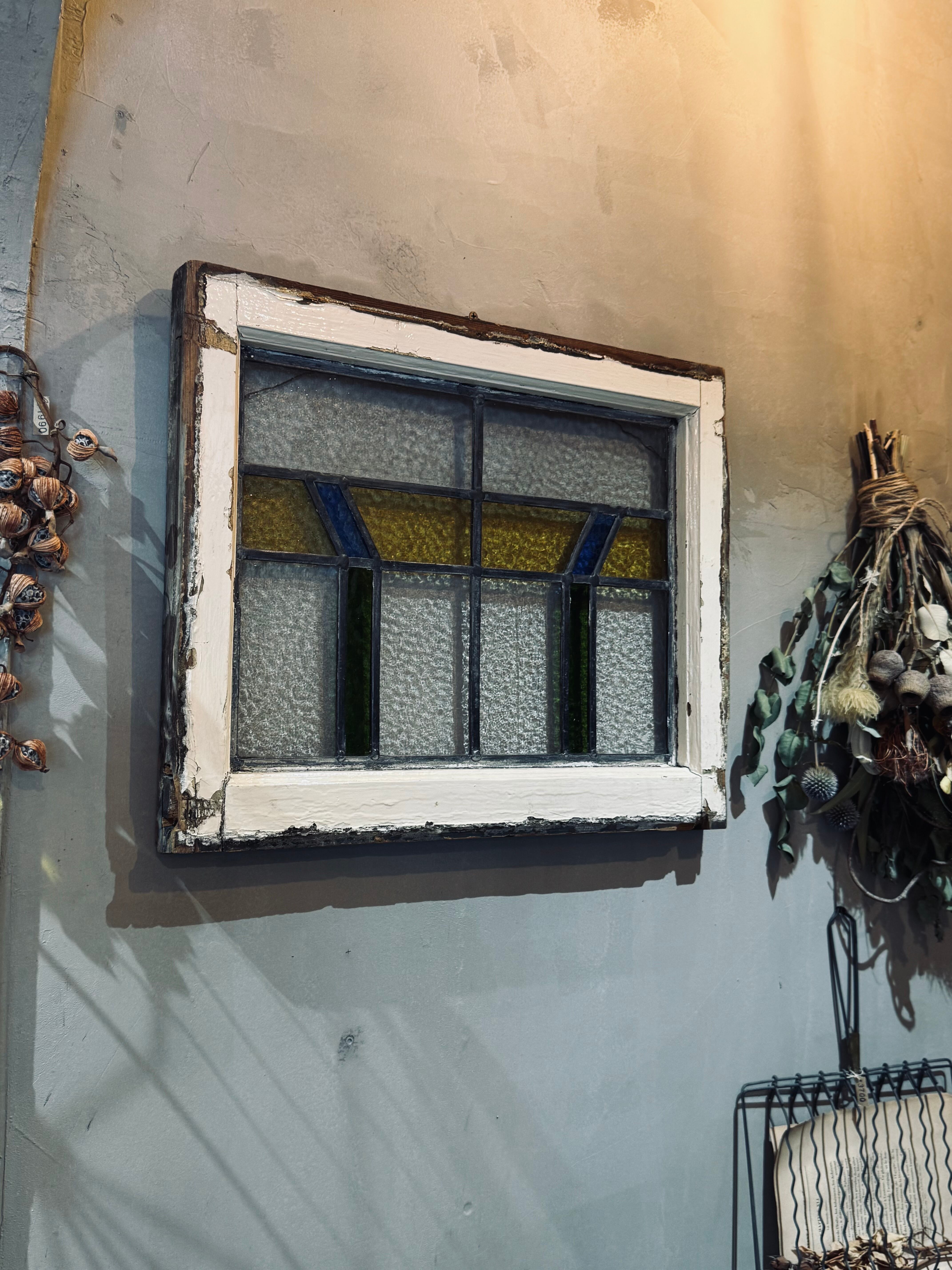 年月を重ねた木枠に、静かな色彩を閉じ込めたステンドグラ
