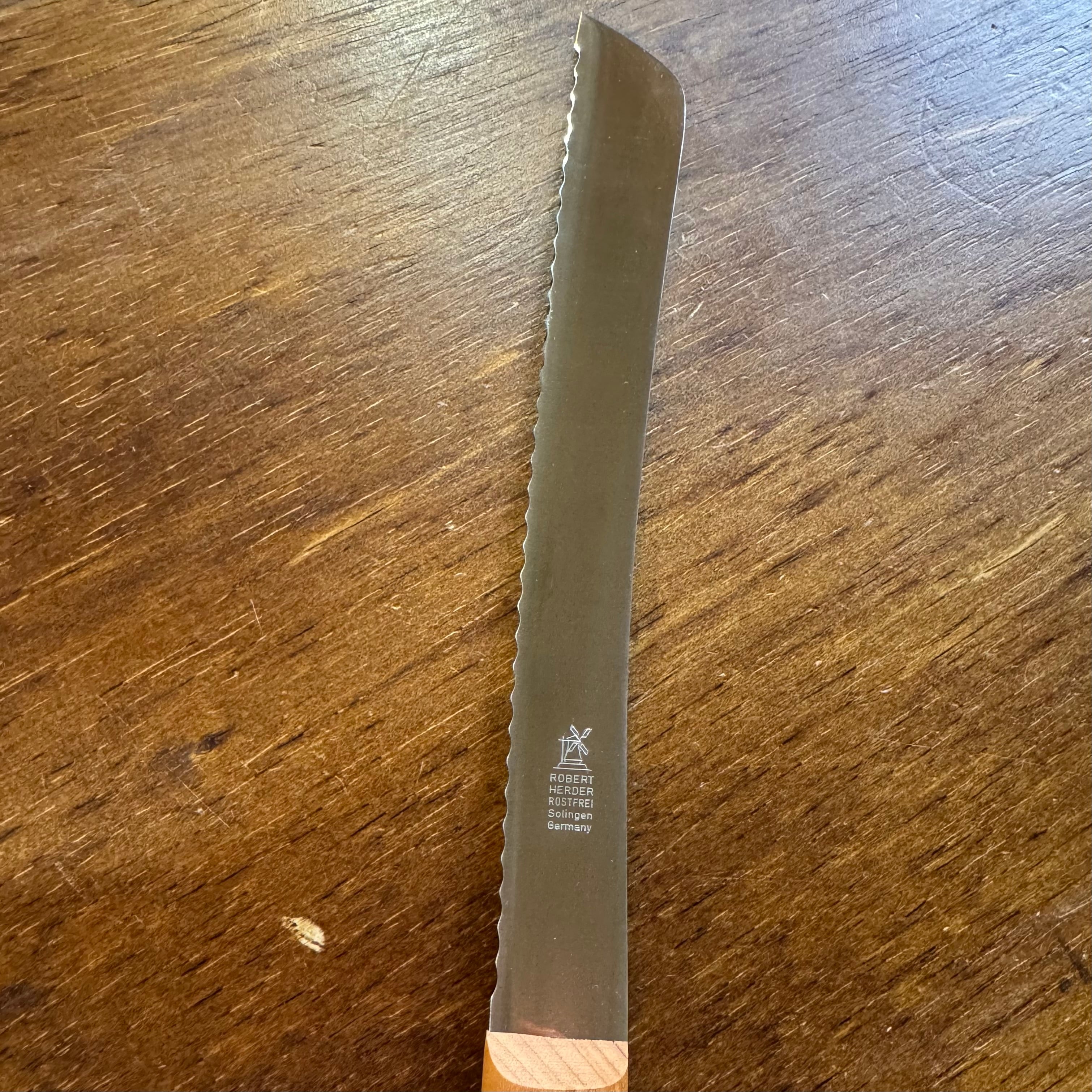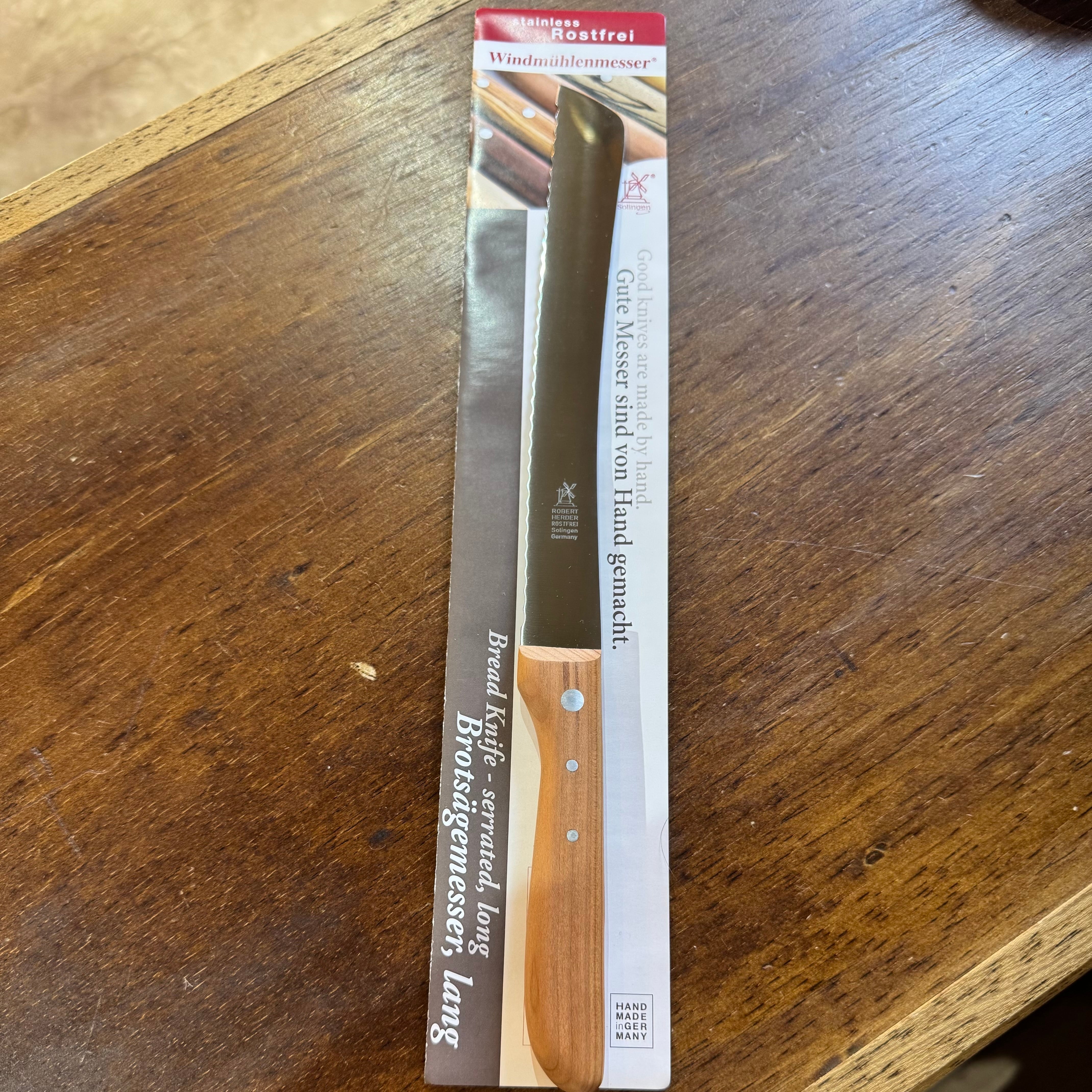 ブランドの象徴である風車マークは、かつて風力で研ぎ石を回していた歴史の証です。