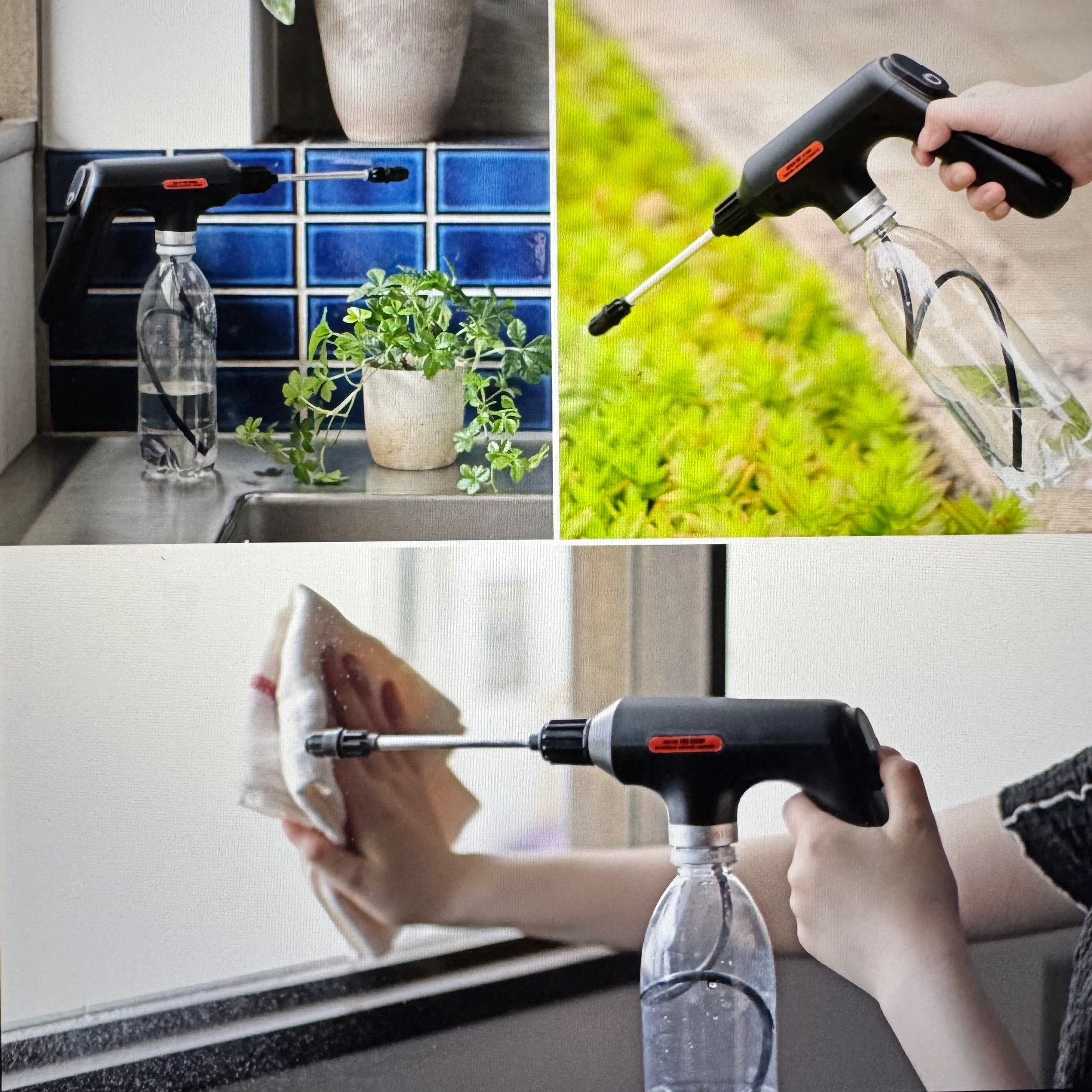ワンタッチで電源が入る充電式の電動霧吹き機。