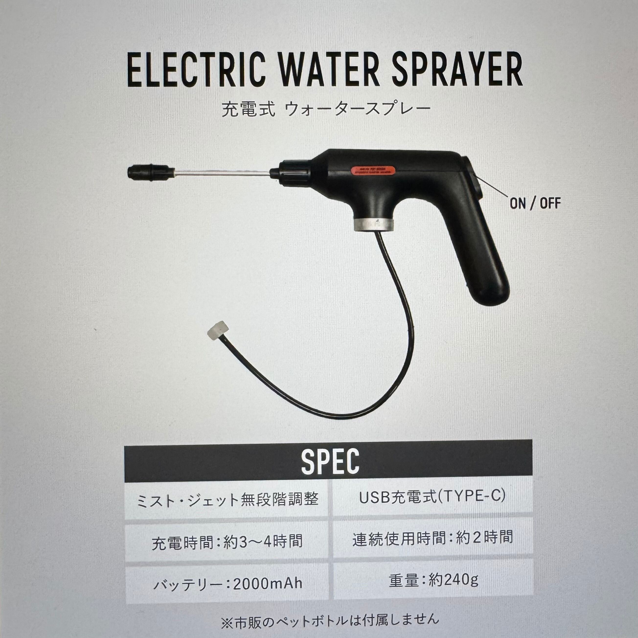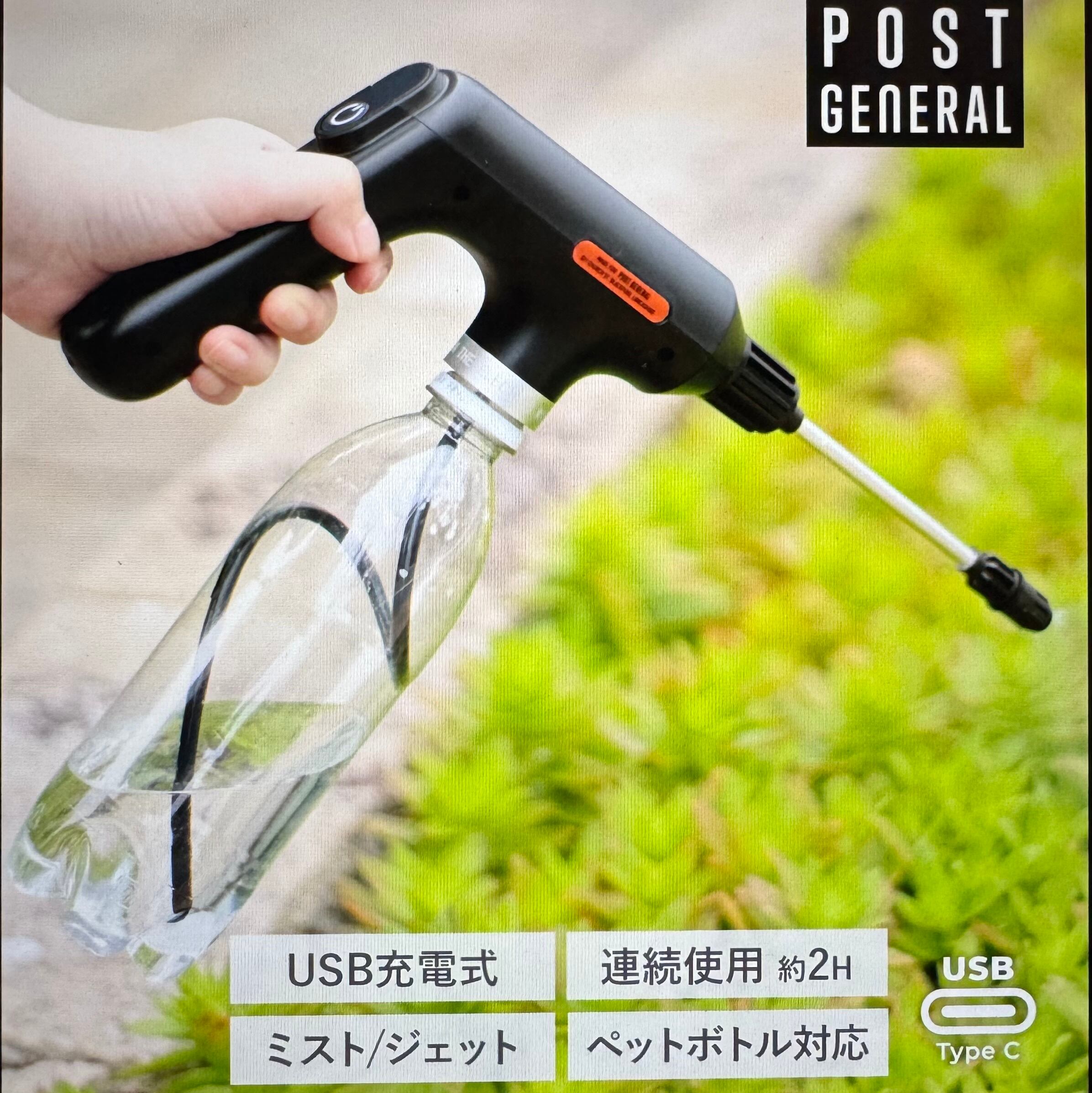 本体に市販のペットボトルをセットをするだけで使える電動霧吹き機です。