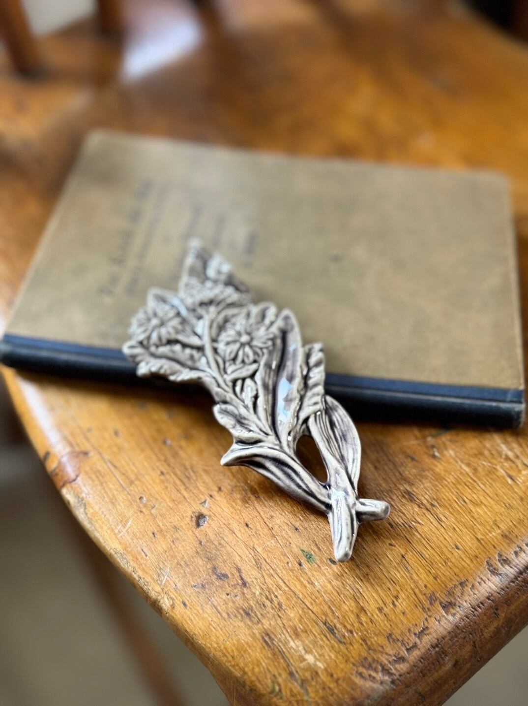 草花を束ねたような繊細なモチーフは、テーブルの上にそっと置くだけで、日常のひとときを少し特別な時間へと変えてくれます。