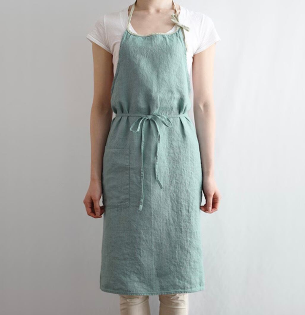 lino e lina フルエプロン ミラ アクアブルー/スプリンググリーン