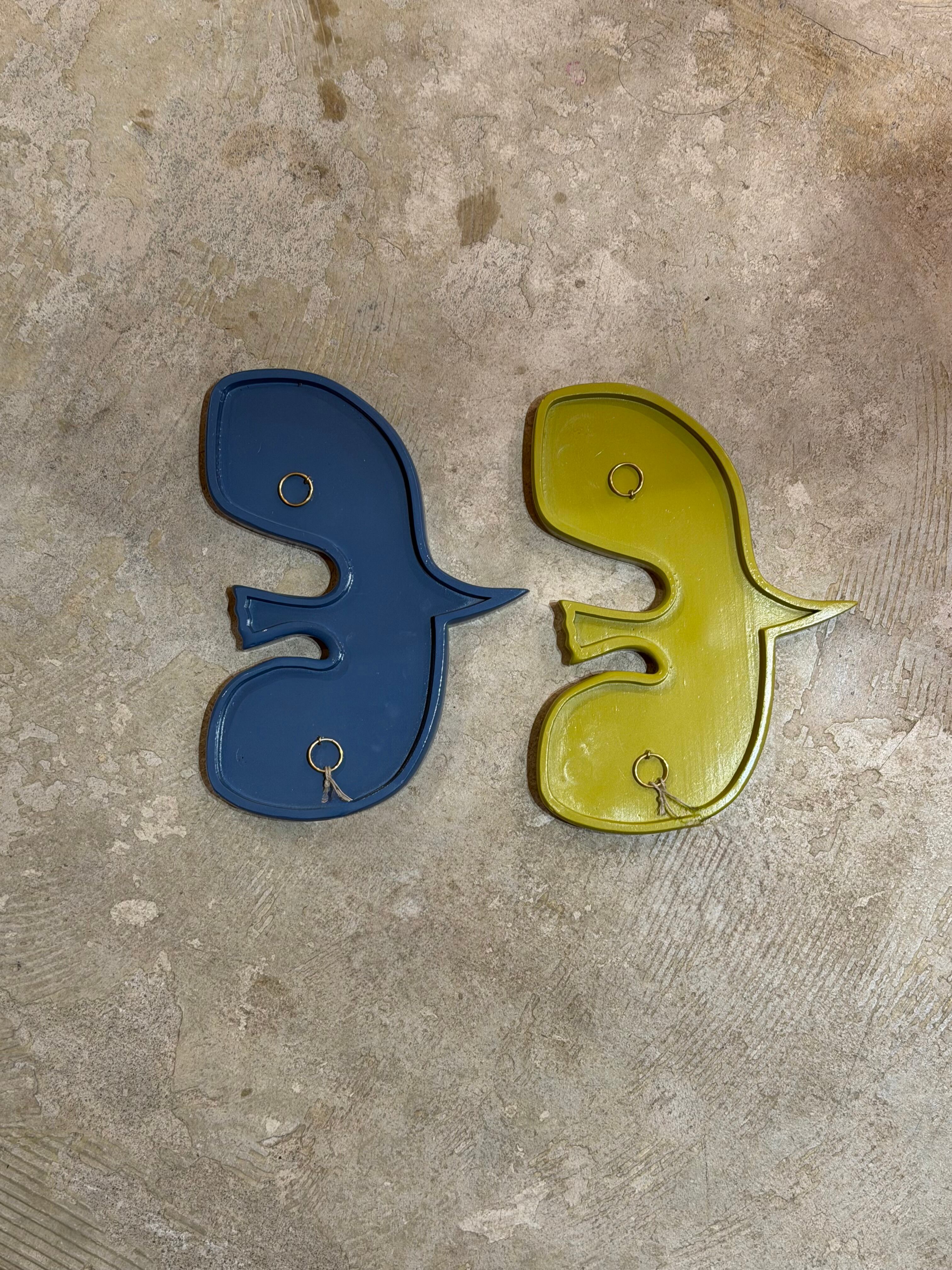 レジンで作った壁に飾るウォールデコアイテムの鳥。表面には植物のレース柄をあしらったエンボス模様が施されており、光のあたり方で表情が変わる、奥行きのあるデザインが特徴です。